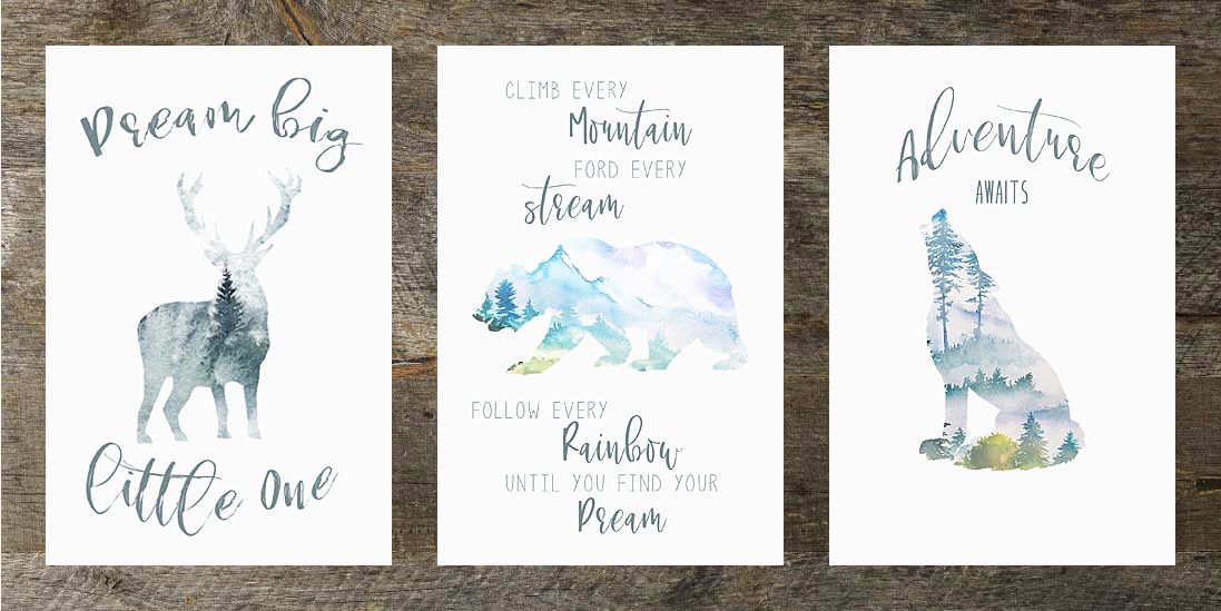 Woodlands Animal Nursery Prints, available to download in over 20+ standard picture sizes. Download your files, print at home, at your local print shop, or upload the files to an online printing service, frame and hang!